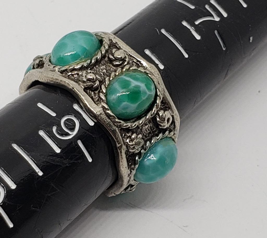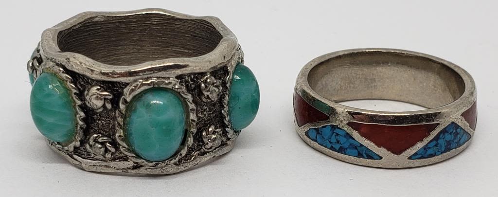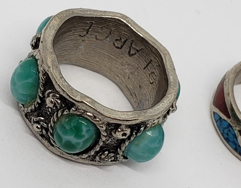 (1)WITH TURQUOSE AND RED CORAL INLAY (1)WITH GREEN MARBLE LUCITE-DIFFERENT SIZES (SEE PICTURES)