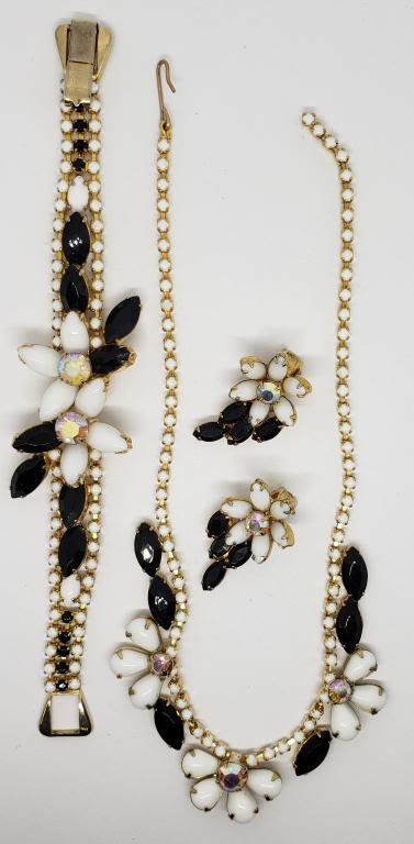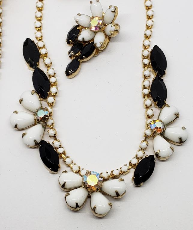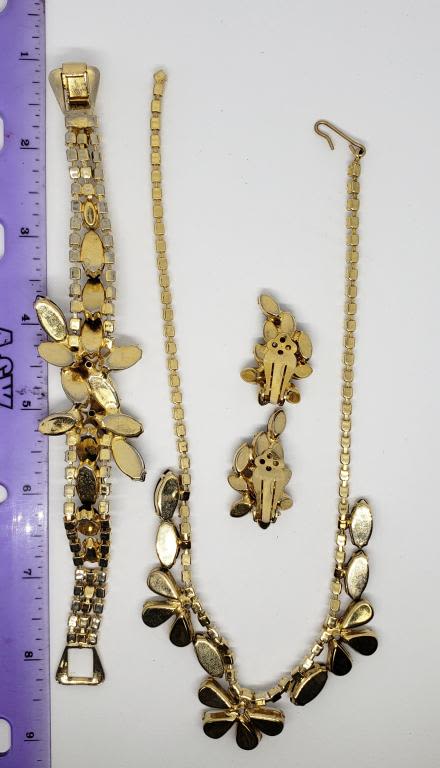 LUCITE FLOWER NECKLACE WITH MATCHING BRACELET AND CLIP ON EARRINGS