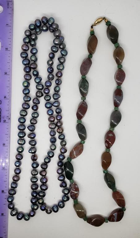 GOLD TONED CLASP PLUS METALLIC BEADED NECKLACE