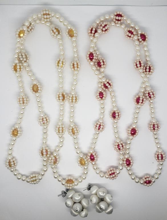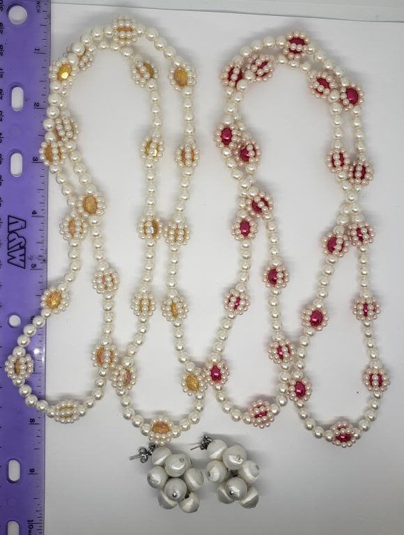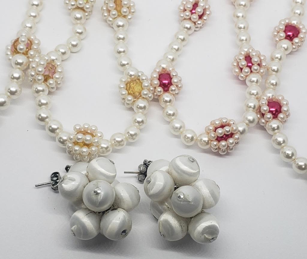 (1)PAIR OF PIERCED DANGLY WHITE BEADED CLUSTER EARRINGS