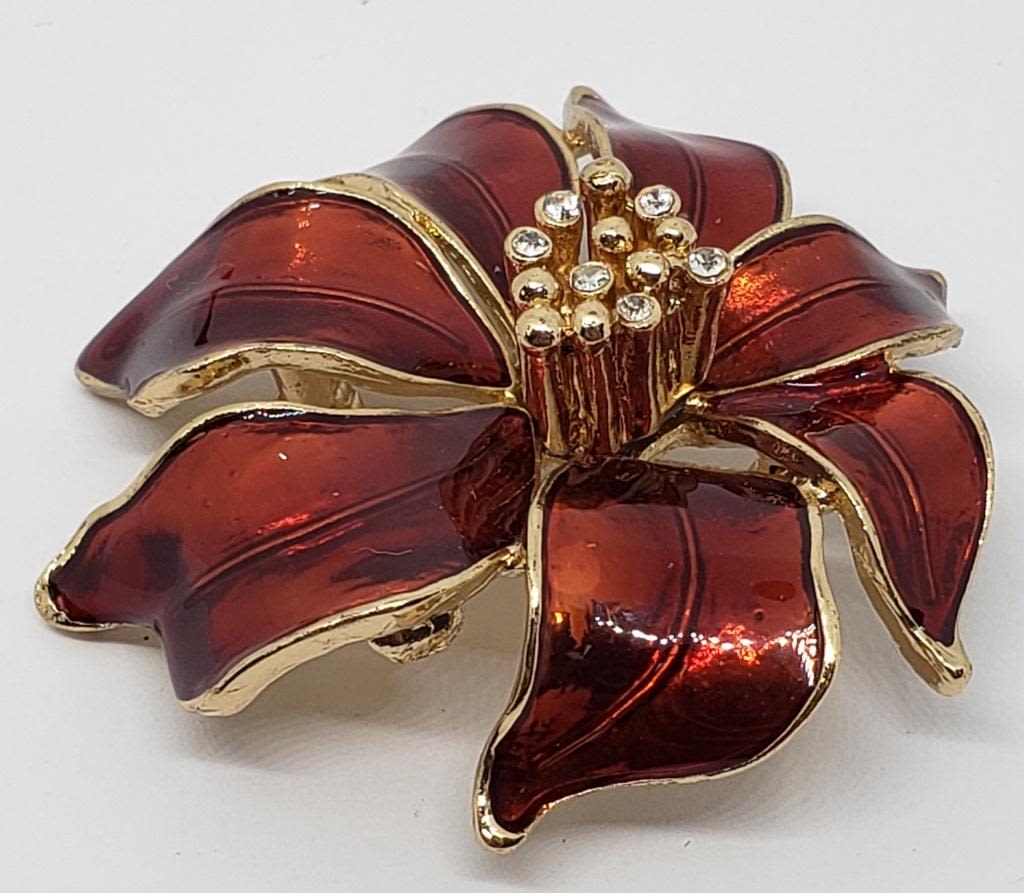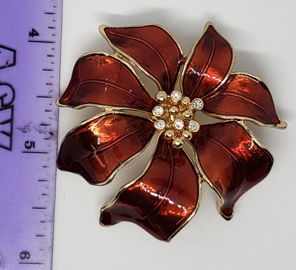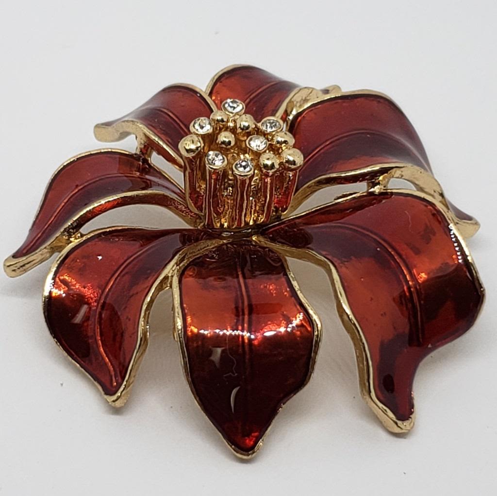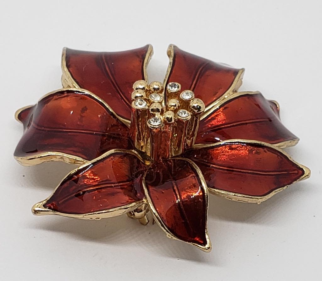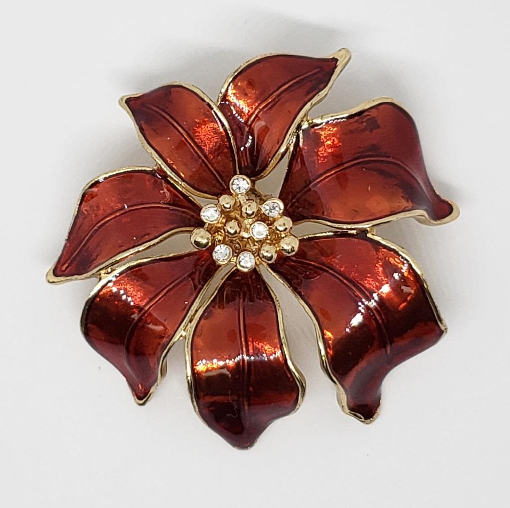 POINSETTA BROOCH WITH RHINESTONE MIDDLE