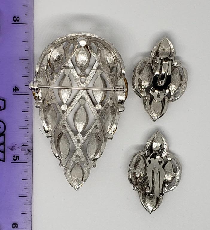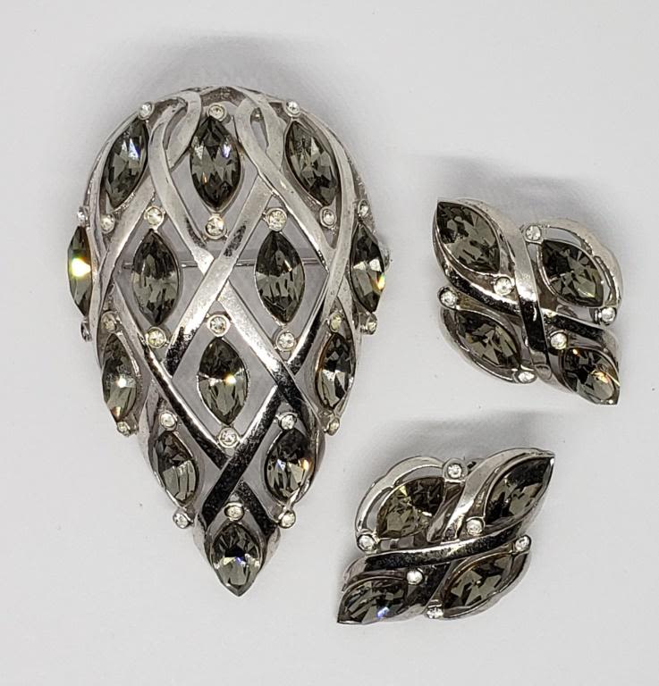 GRAY RHIESTONE-CLEAR RHINESTONE ACCENTS-COMES WITH MATCHING PAIR OF CLIP ON EARRINGS