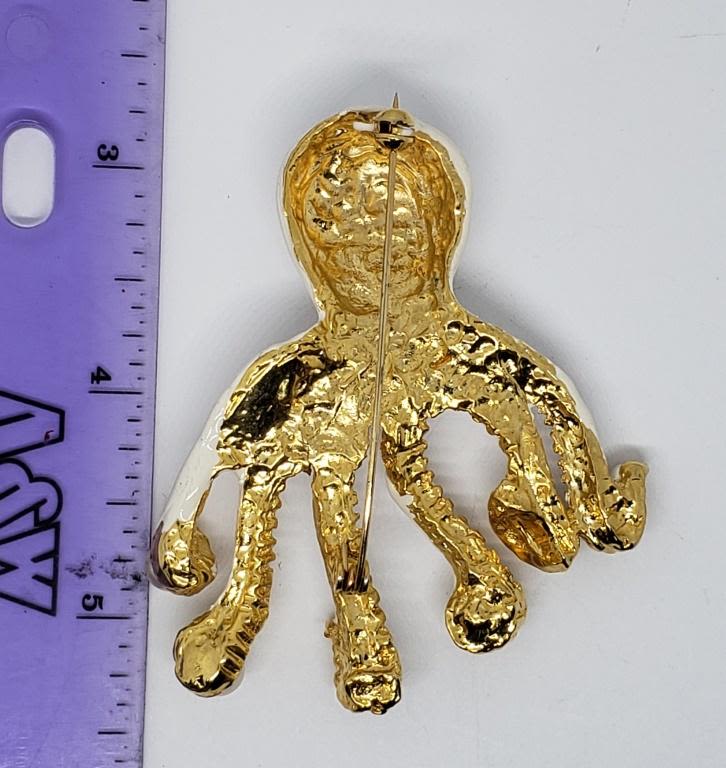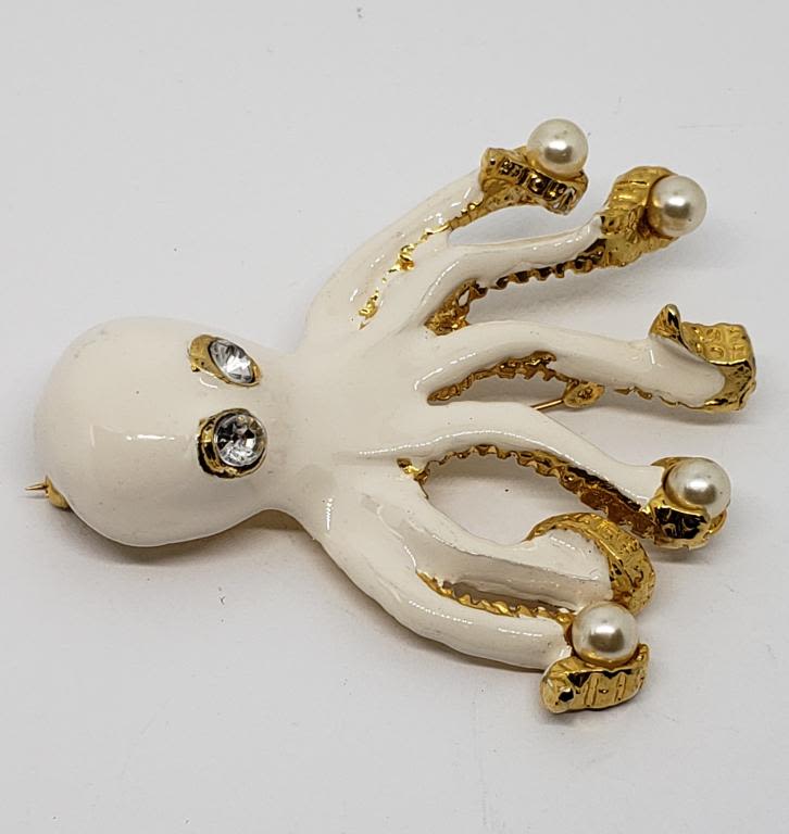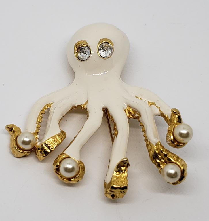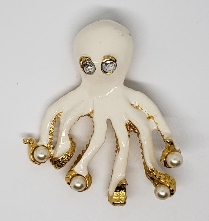 BROOCH WITH RHINESTONE EYES-FAUX PEARL TENTICLES (1)MISSING