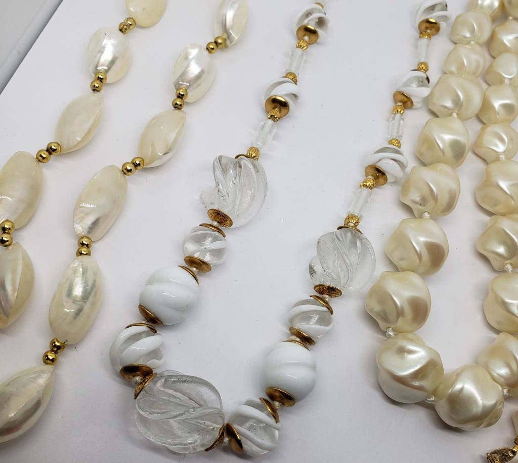 WHITE LUCITE (1)SHELL (1)CLEAR AND WHITE GLASS