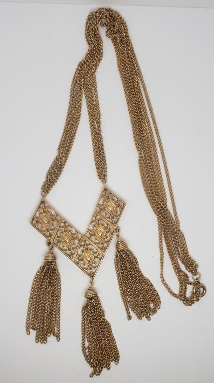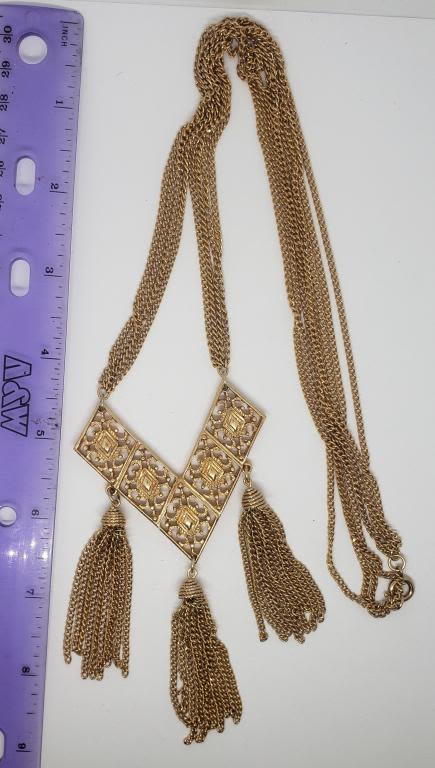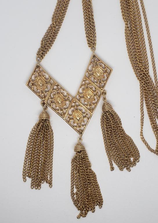 TONED NECKLACE WITH DANGLY TASSLES OFF PENDANT