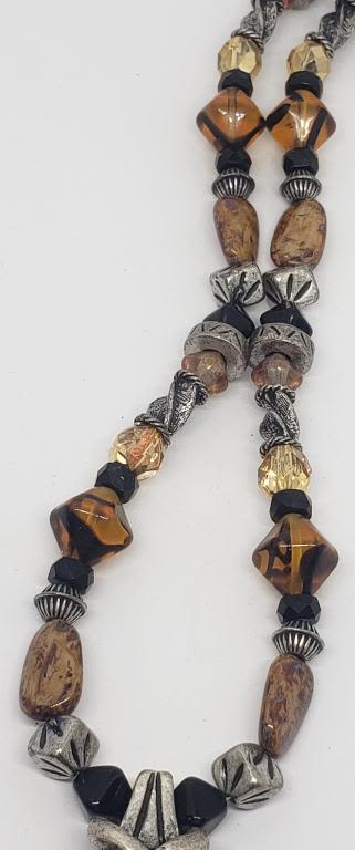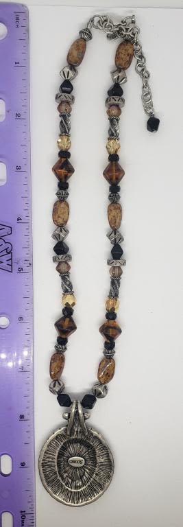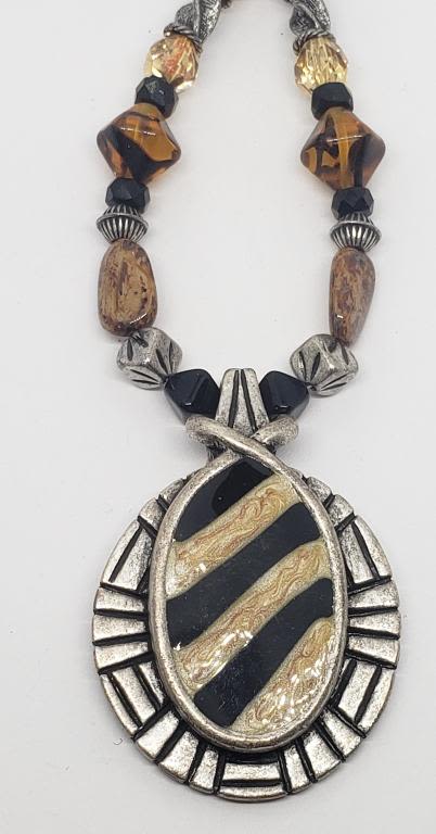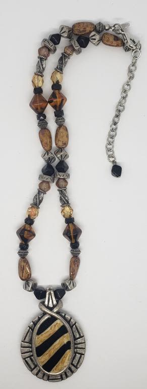 NATURAL STONED NECKLACE WITH ENAMEL PENDANT