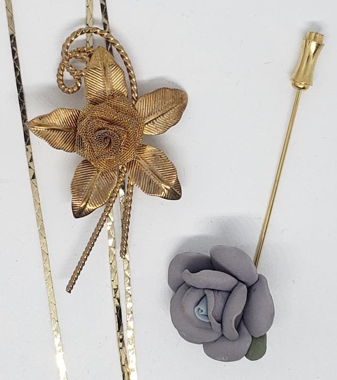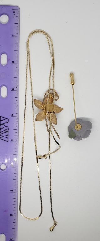NECKLACE PLUS LAVENDAR ROSE DENTON BONE PIN