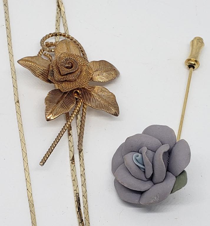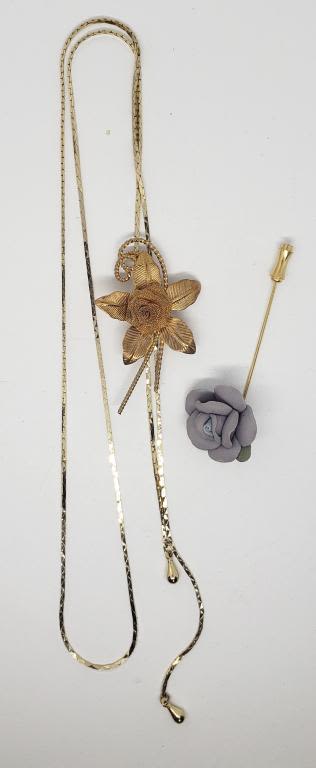 VINTAGE GOLD TONED WOMAN'S FLOWER BOLO