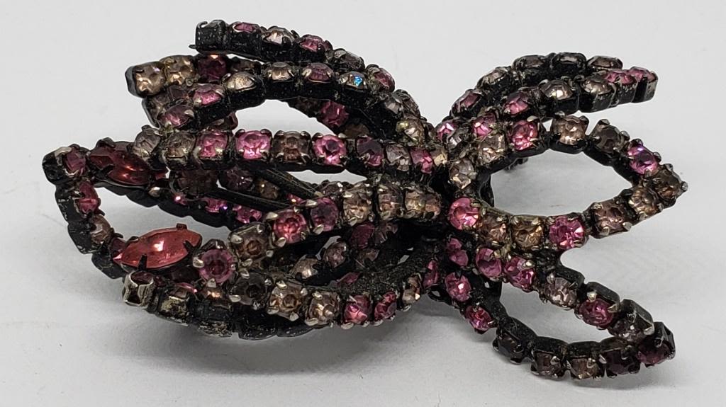 NO RHINESTONES MISSING BUT PIN NEEDS REATTACHED