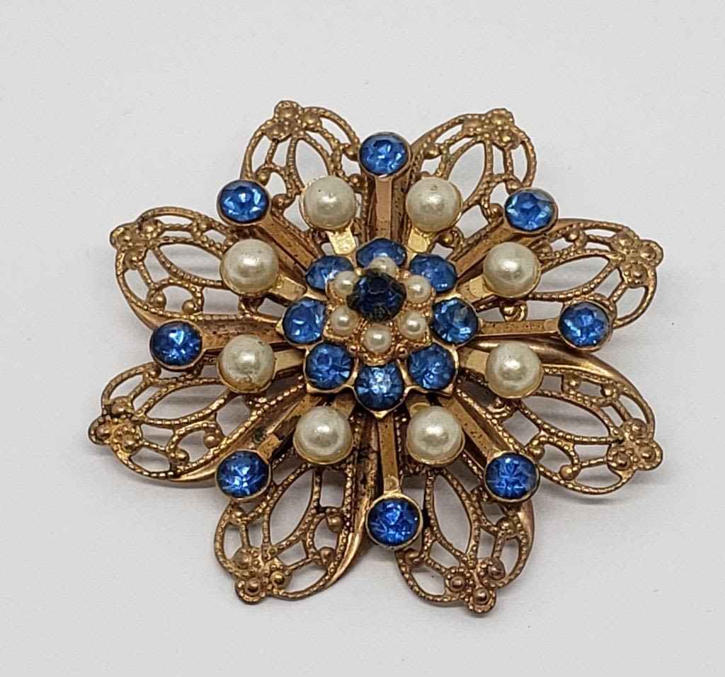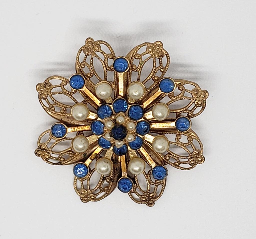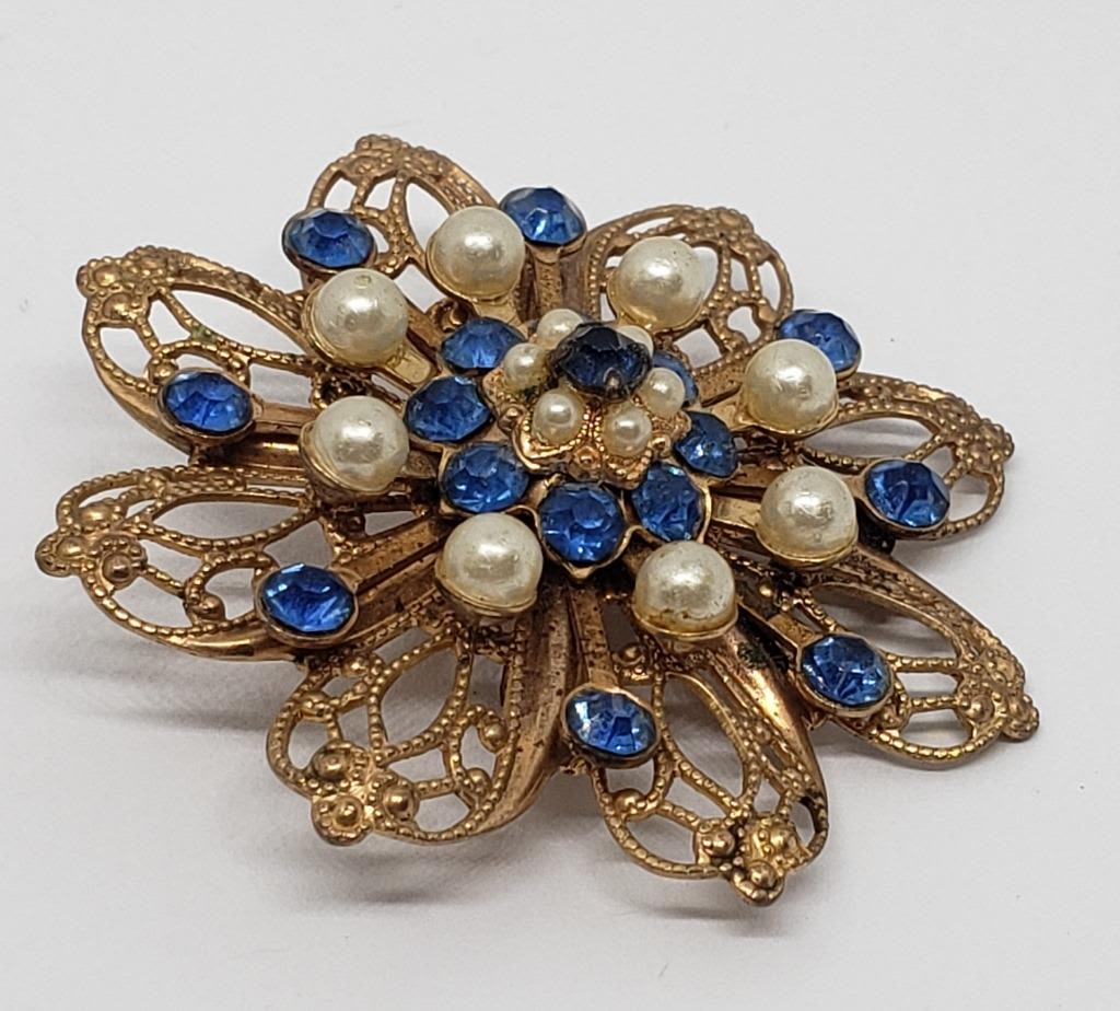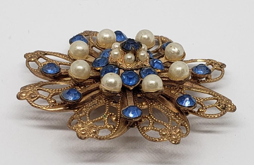 WITH BLUE RHINESTONE AND FAUX PEARLS
