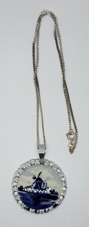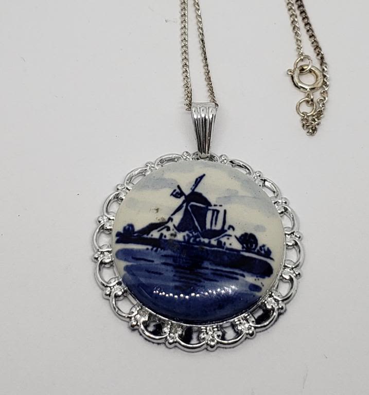 PAINTED PENDNAT WITH SILVER TONED CHAIN