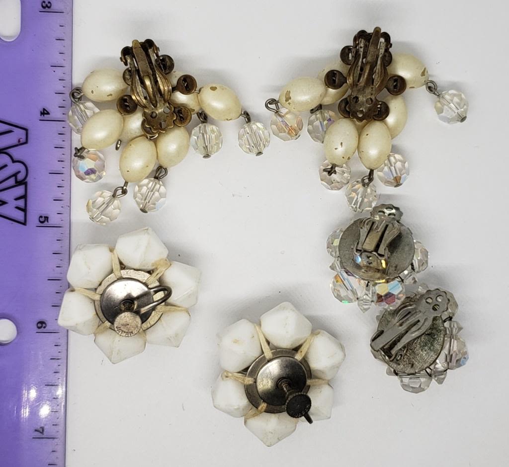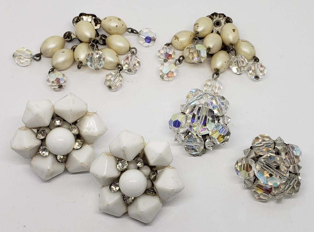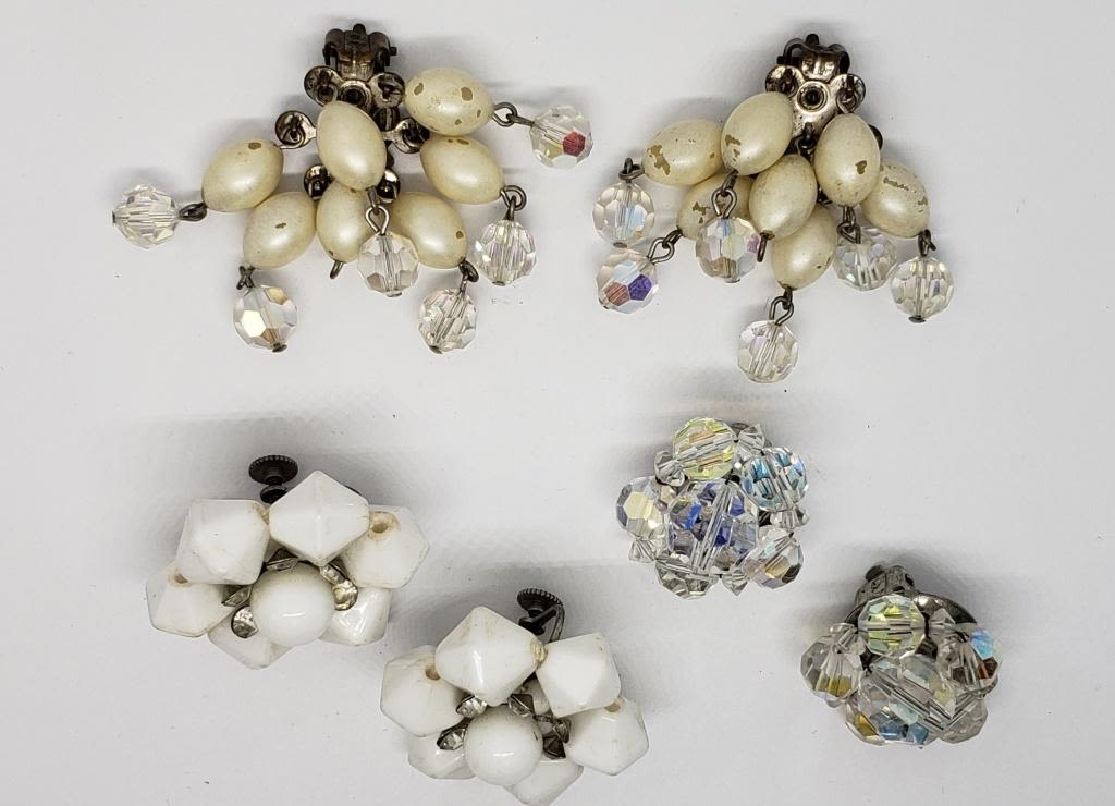 PAIR OF DANGLY SHOE CLIPS-FAUX PEARLS-CLEAR BEADS-RHINESTONES