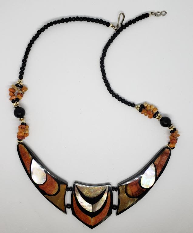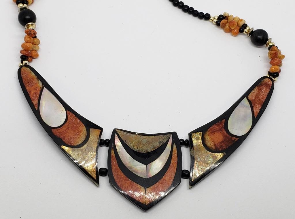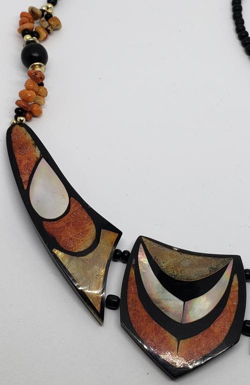 BLACK AND CORAL BEAD ACCENTS