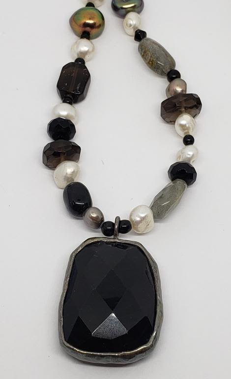 LARGE BLACK RHINESTONE PENDANT-TOTAL 31.0 DWT