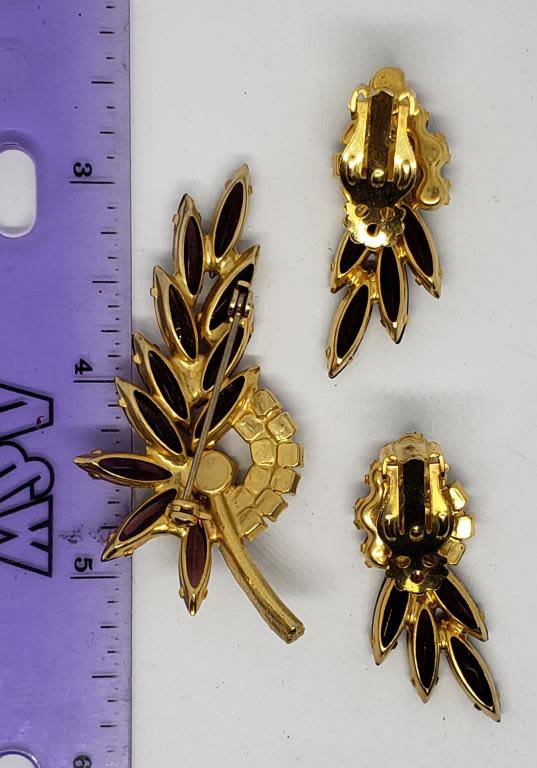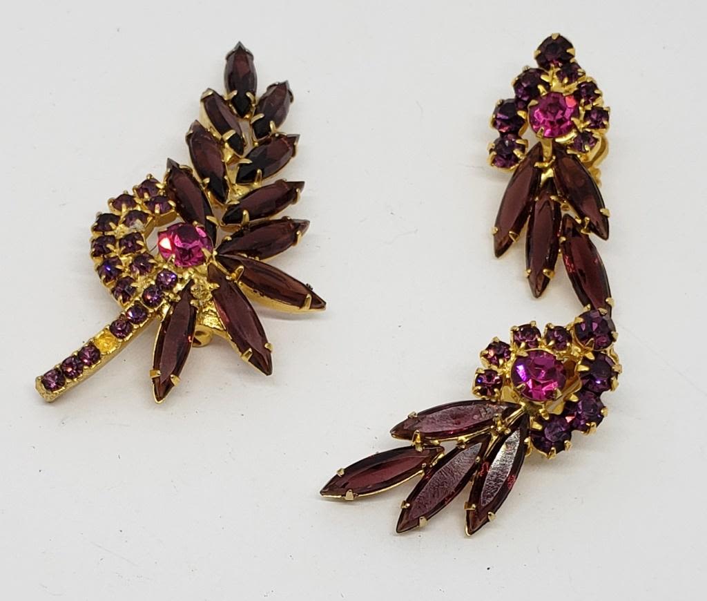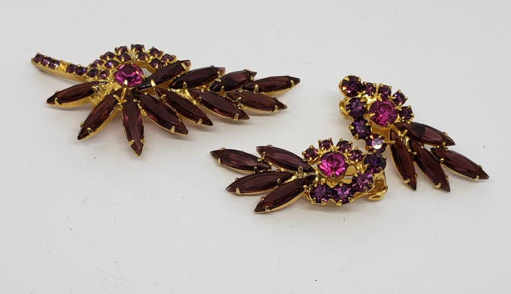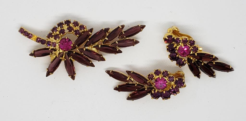 WITH MATCHING CLIP ON EARRINGS-PINK AND PURUPLE RHINESTONES!!