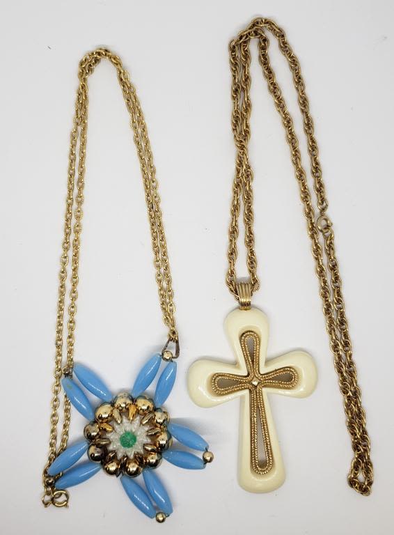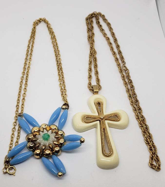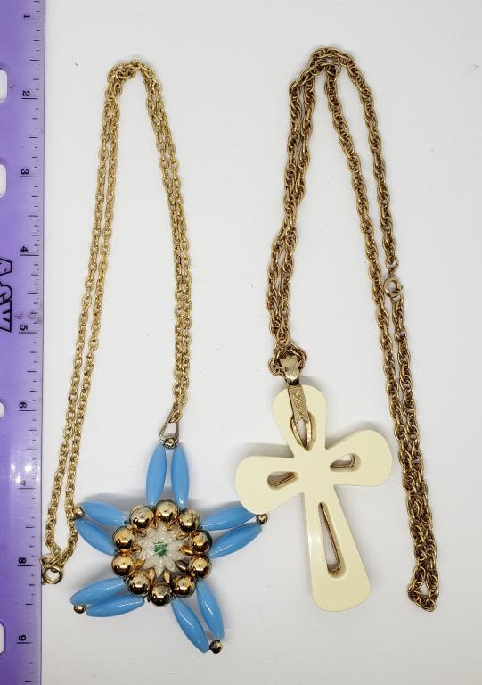 CRÈME LUCITE CROSS PENDANT (1)GOLD TONED AND BLUE BEADED STAR PENDANT