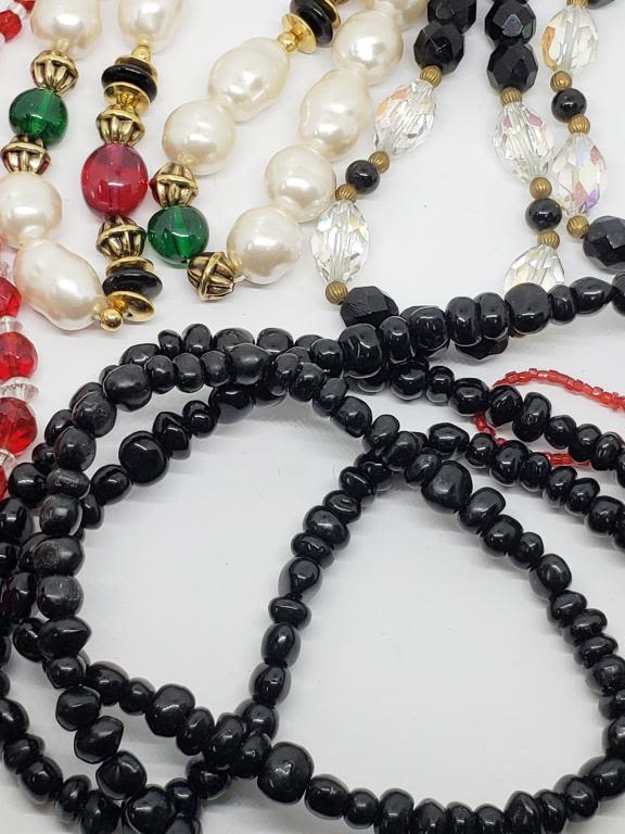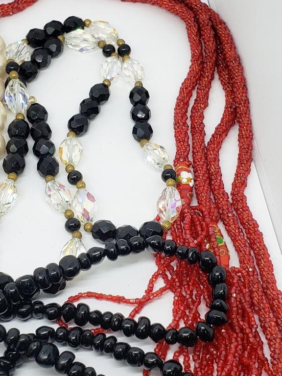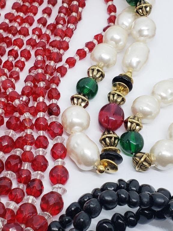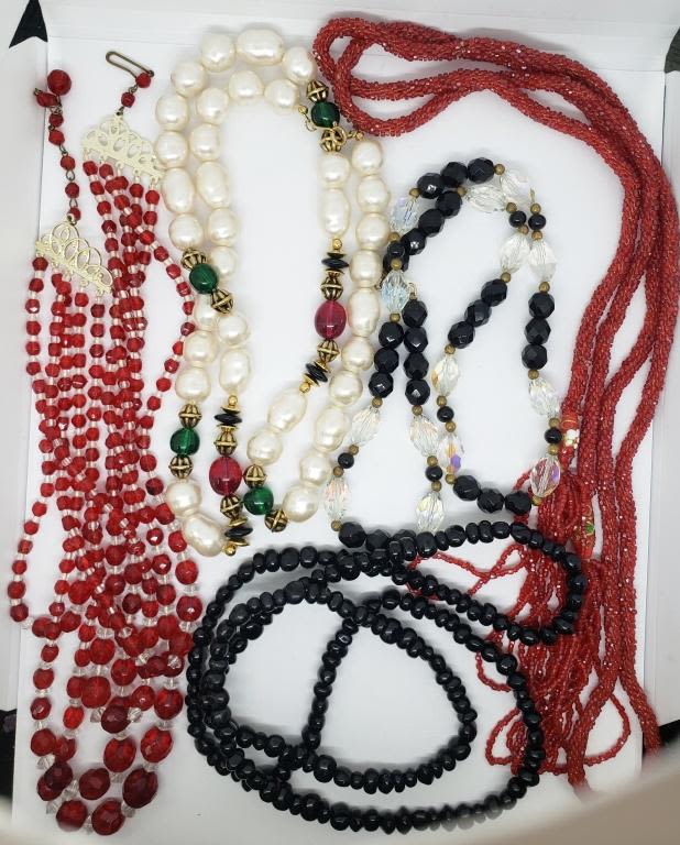RED-BLUE-BLACK-CLEAR-LUCITE BEADS-VARIOUS LENGTHS/STYLES