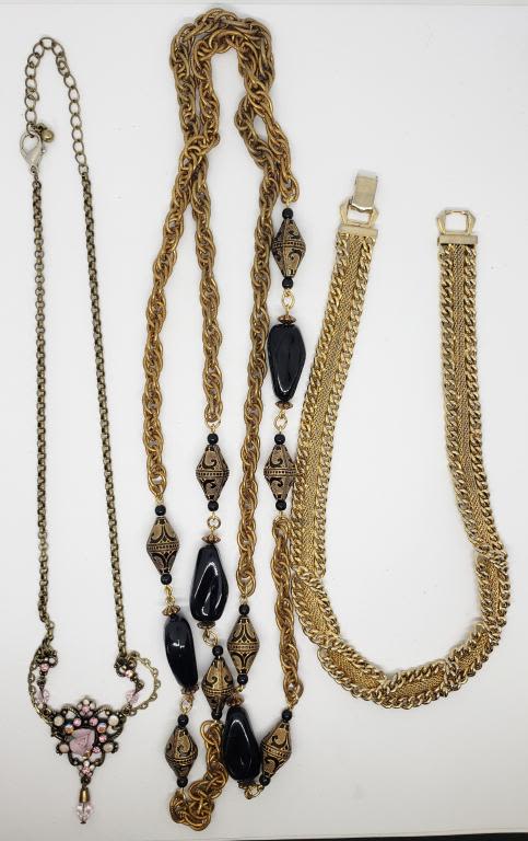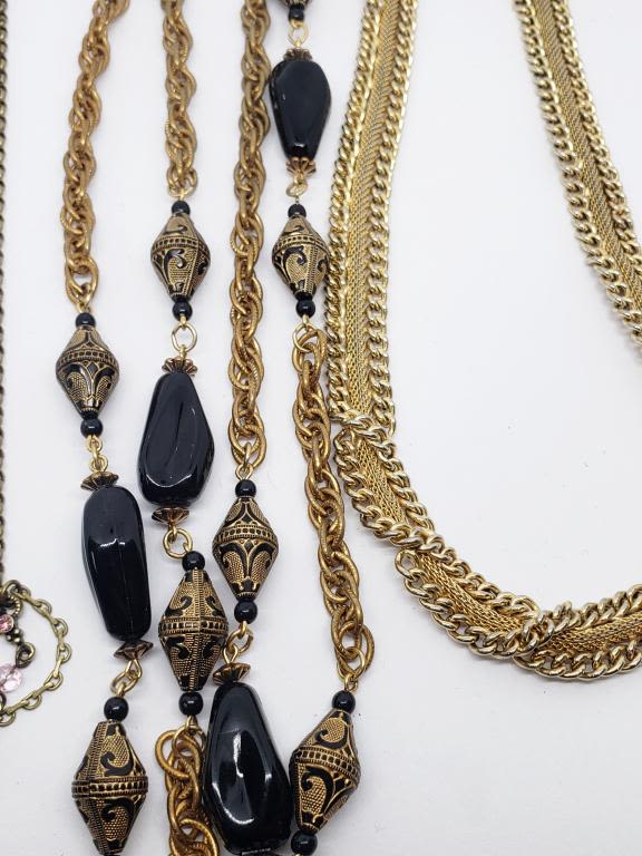 LAYERED (1)FLOWER THE DENTON BONE ROSE RHINESTONES & ENAMEL (1)LONG LINKED WITH BLACK BEADS/ENAMEL