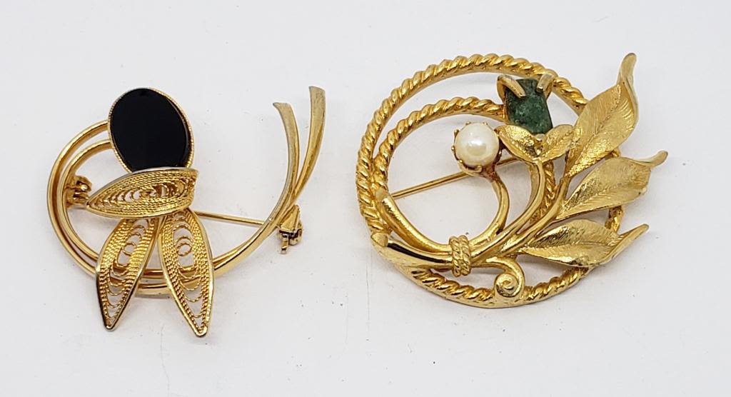 COVENTRY WITH JADITE AND FAUX PEARL (1)FILIGREE WITH BLACK LUCITE