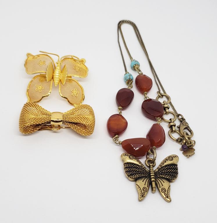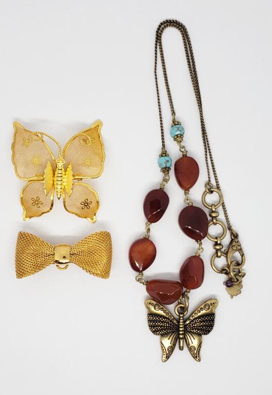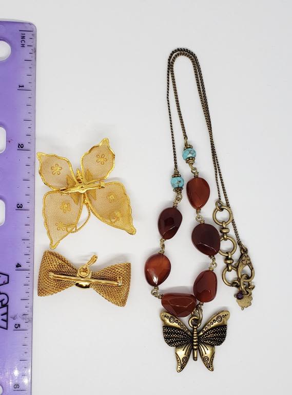 (1)BOW (1)BUTTERFLY PLUSE LUCKY BRAND TURQUOSE AND AMBER COLORED BEADED BUTTERFLY NECKLACE