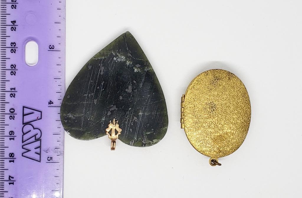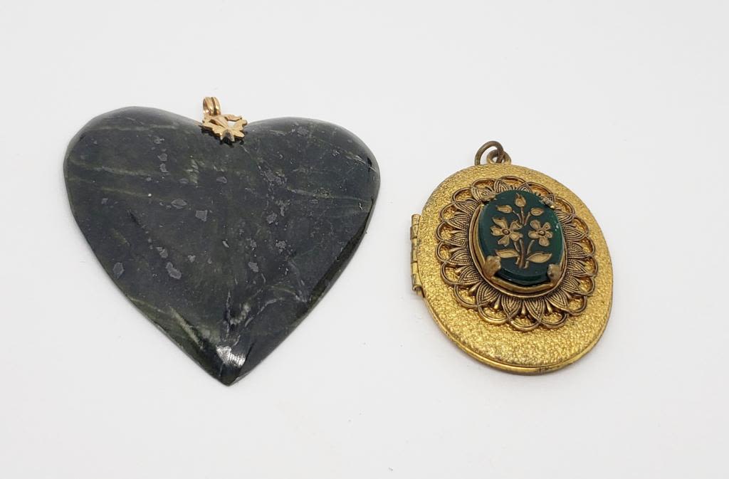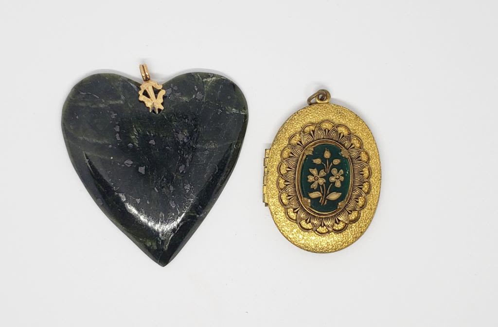 PLUSE (1)GOLD TONED LOCKET PENDANT WITH GREEN ENAMEL