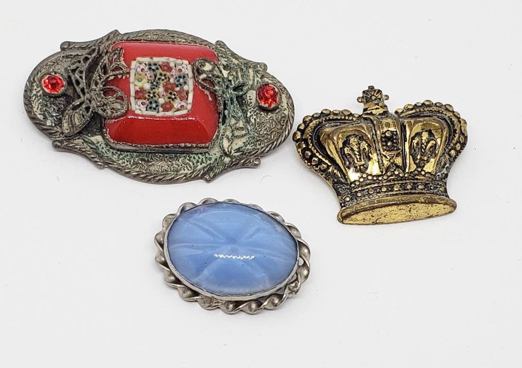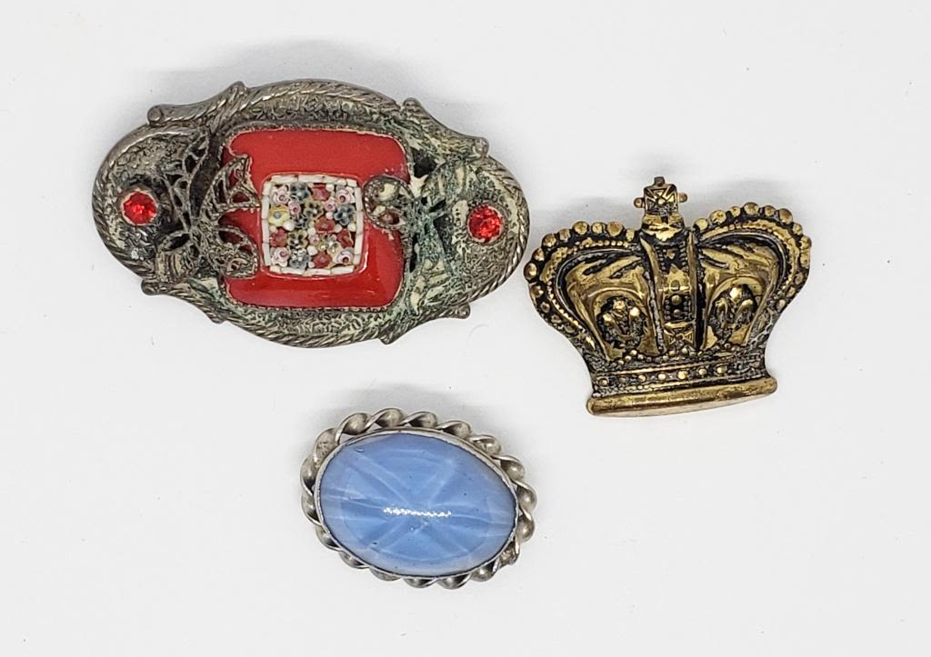 (1)SILVER TONED MICRO MOSAIC (1)GOLD TONED CROWN