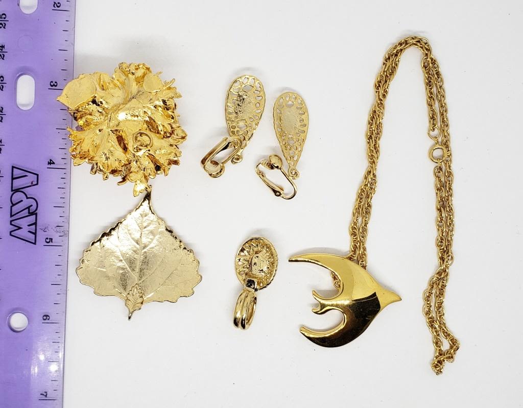 PAIR CLIP ON SET WITH CRÈME LUCITE (1)PENDANT (1)NECKALCE WITH BIRD PENDANT
