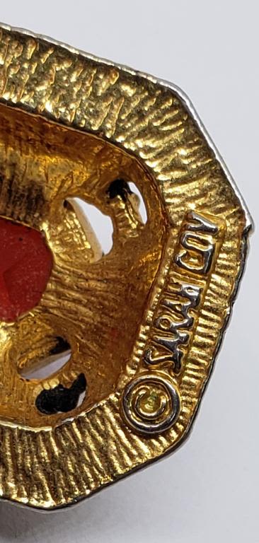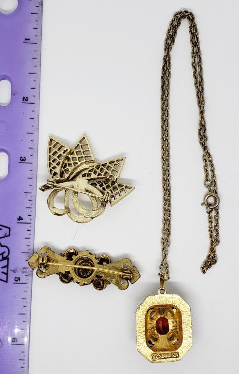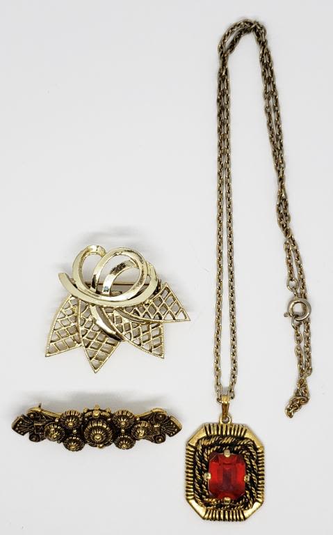 COVENTRY NECKLACE WITH RUBY RED RHINESTONE CENTER & (2)BROOCHES