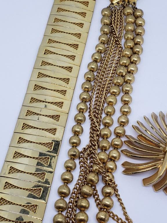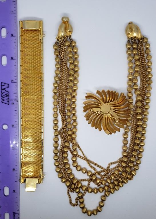 (1)PANEL BRACELET WITH MESH ACCENT & (1)MULTI LAYERED BEADED AND LINKED CHAIN NECKLACE