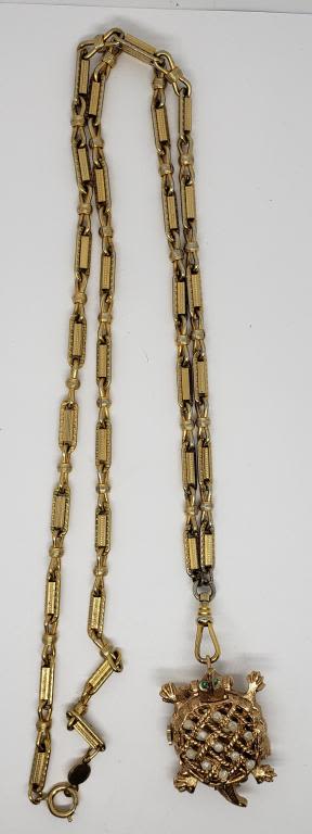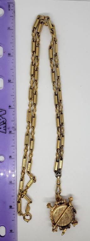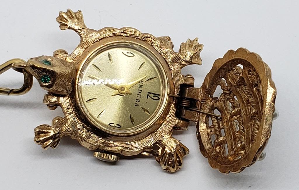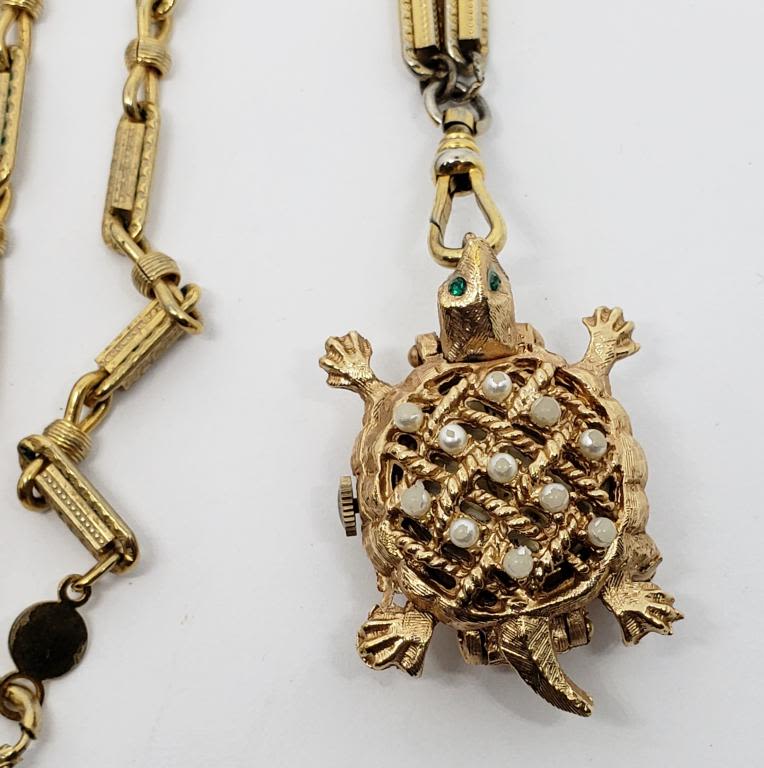 TURTLE WATCH LOCKET-FAUX PEARL-RHINESTONES