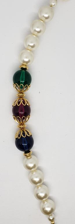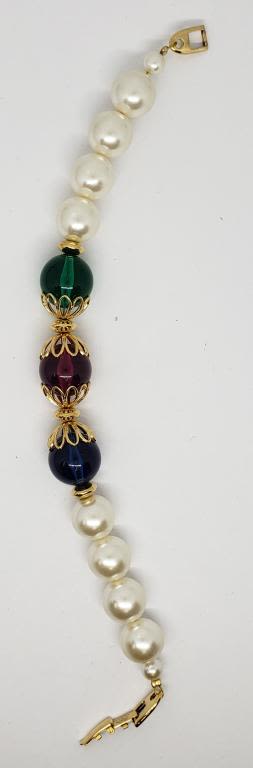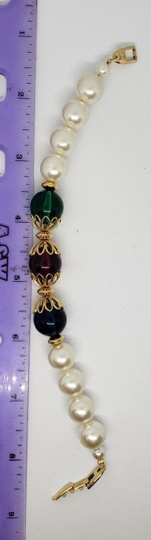 BRACELET WITH DARK GREEN, PURPLE, AND BLUE LUCITE BEAD ACCENTS-LOOKS NEW!