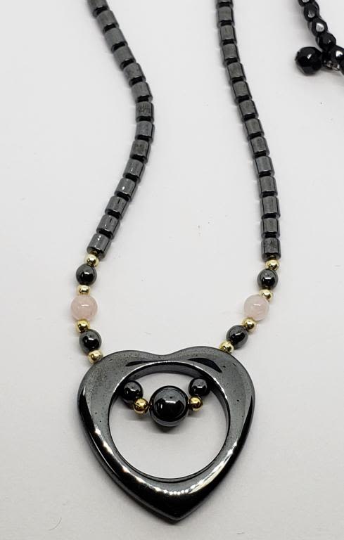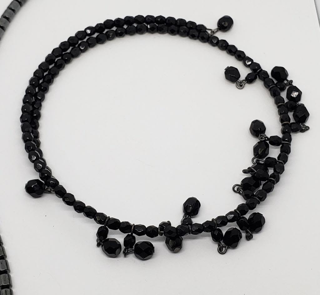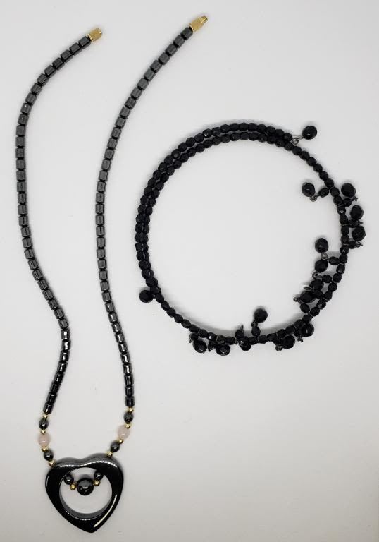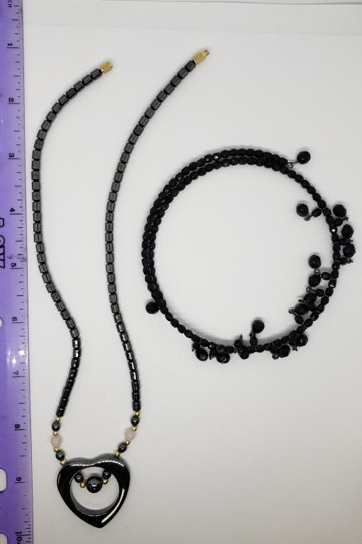 NECKLACE WITH HEART PENDANT PLUSE (1)VTG BLACK BEADED WRAP CHOKER