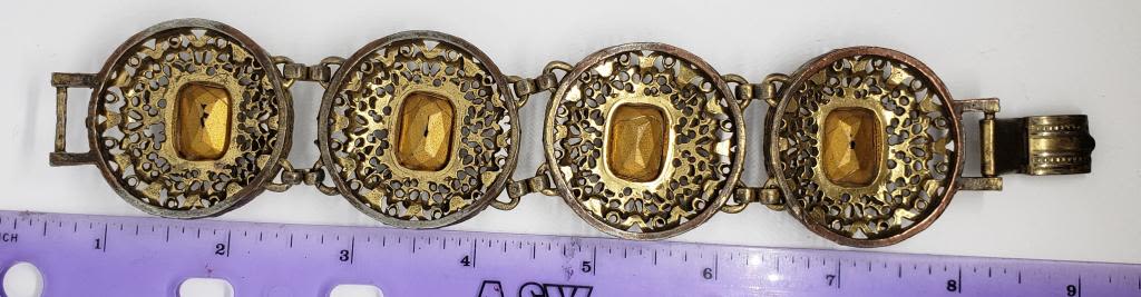 WITH LARGE EMRALD GREEN RHINESTONES-FILIGREE BORDER
