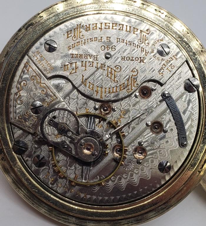 GRADE 940, 21 j, MOTOR BARREL, NICE ROLLED GOLD PLATE SCREWBACK CASE – RUNNING CONDITION
