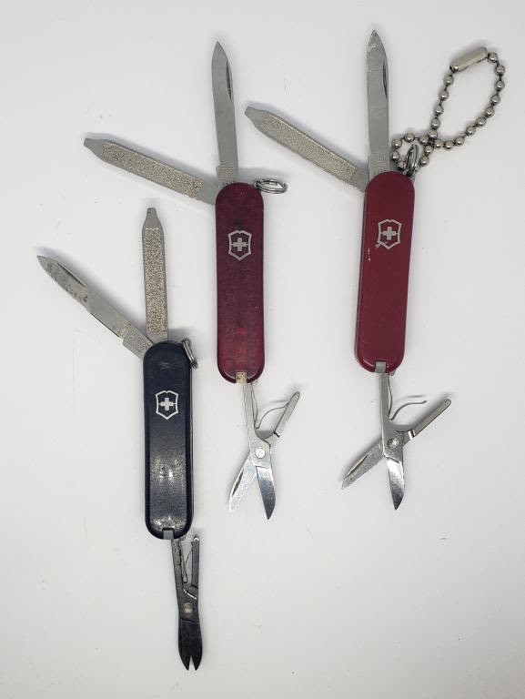 (2) Red (1) Black Swiss Army Pocket Knife – USED