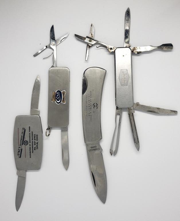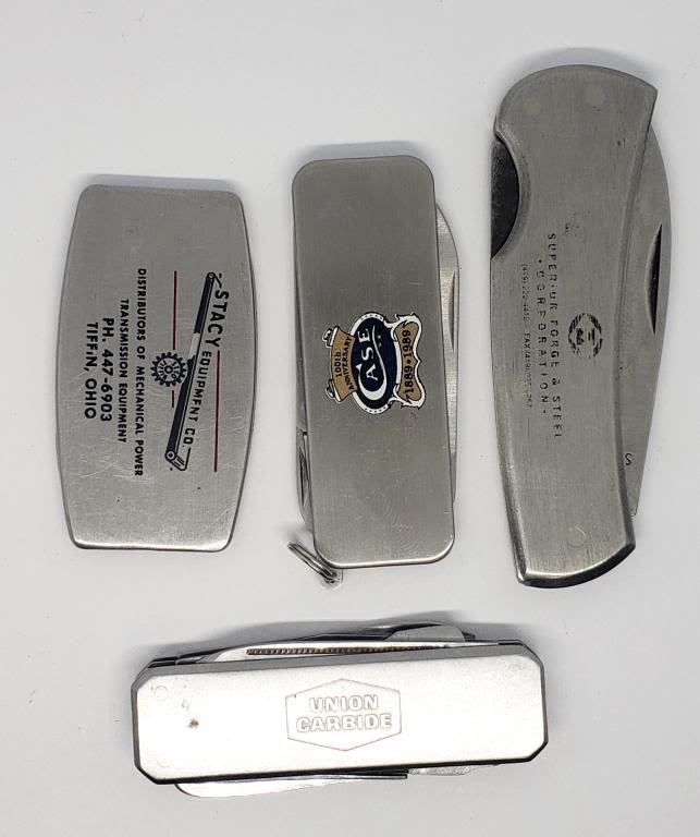 100th ANNIV CASE ZIPPO, UNION CARBIDE BARLOW, STACY EQUIP ZIPPO, SUPERIOR FORGE & STEEL