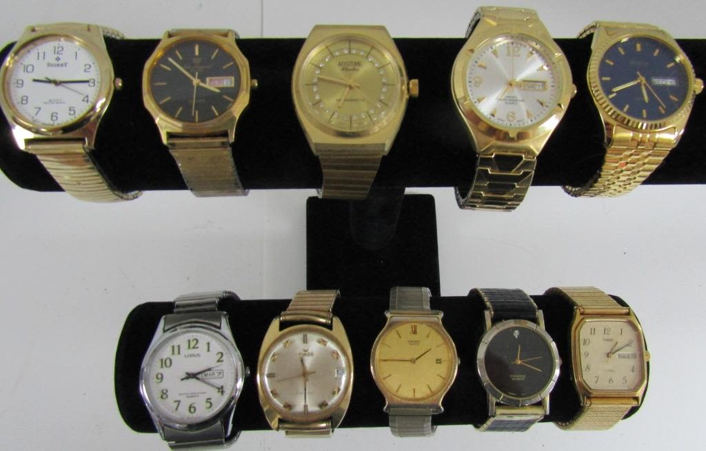 ALL UNTESTED: SOME MAY WORK. SOME MAY NOT. SOME MAY NEED BATTERIES.SOME FOR PARTS OR REPAIR:10 MENS QUARTZ WATCHES: LORUS-GENEVA-ACCUTIME-SIGNET-SEIKO-TULES TIRRGENSEN-(2)TIMEX-SUN COAST-MISC