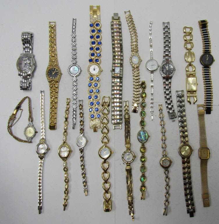 ALL UNTESTED: SOME MAY WORK. SOME MAY NOT. SOME MAY NEED BATTERIES.SOME FOR PARTS OR REPAIR:20 LADIES QUARTZ WATCHES :(2)GENEVE-LUXE-RIVIERA-RONICA-CHOPARD-DUFONT E-SEIKO-(2)ARMITON-REGENT-ANNE KLEIN
