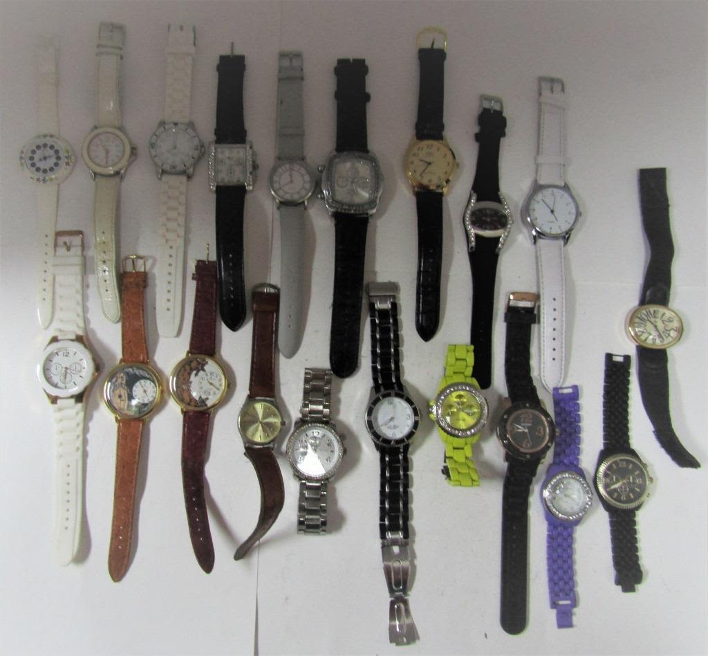 ALL UNTESTED: SOME MAY WORK. SOME MAY NOT. SOME MAY NEED BATTERIES.SOME FOR PARTS OR REPAIR:20 LADIES QUARTZ WATCHES :GENEVA-EMBASSY-NELSON-ICE STAR-C-GOSSIP-Q&Q-MARIE