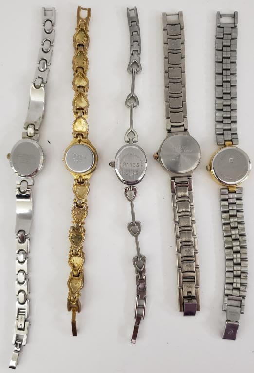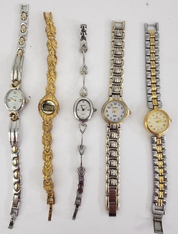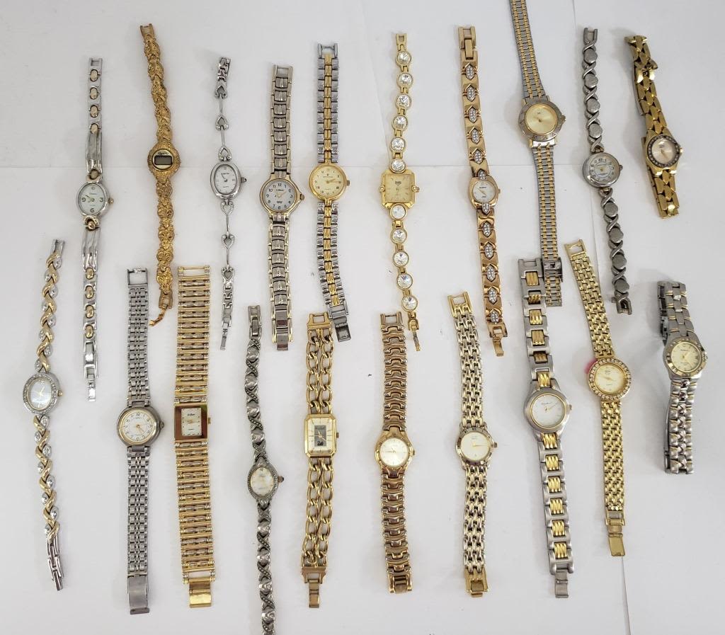 ALL UNTESTED:SOME MAY WORK.SOME MAY NOT.SOME MAY NEED BATTERIES.SOME FOR PARTS OR REPAIRS:20 LADIES QUARTZ WATCHES:(2)ARMITRON-PIERRE CARDIN-RUMOURS-EJ-GUESS-JACLYN SMITH-EDDIE