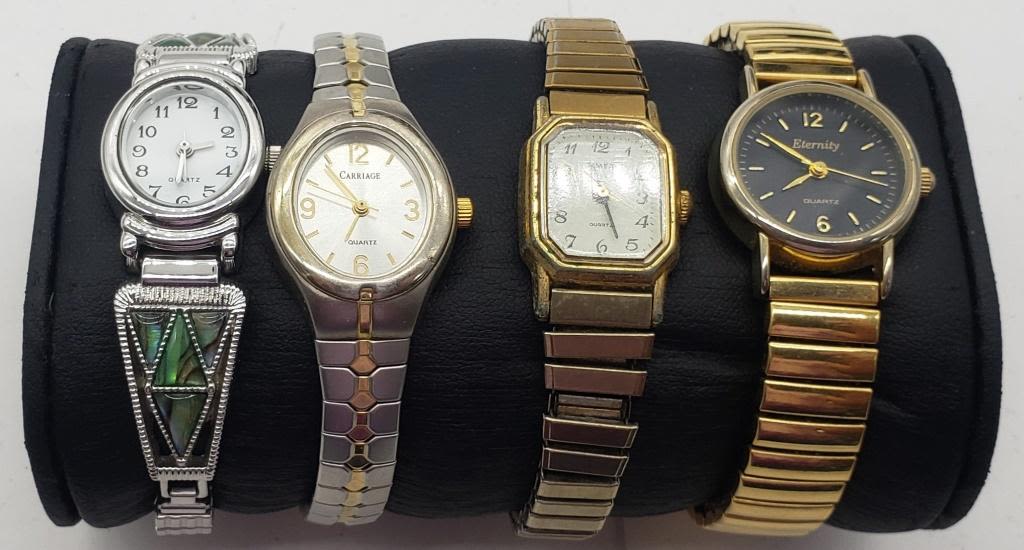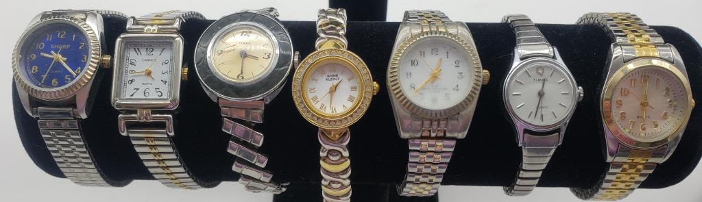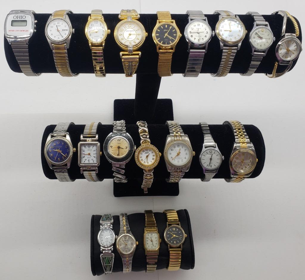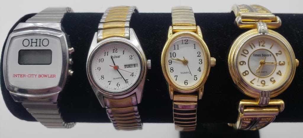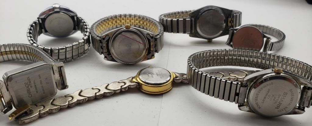 ALL UNTESTED:SOME MAY WORK.SOME MAY NOT.SOME MAY NEED BATTERIES.SOME FOR PARTS OR REPAIRS:20 LADIES QUARTZ WATCHES:TIMES SQUARE-PULSAR-(2)CARRIAGE-(6)TIMEX-BOLAIR-ANN E KLEIN II-SHARP-ETERNITY-MISC