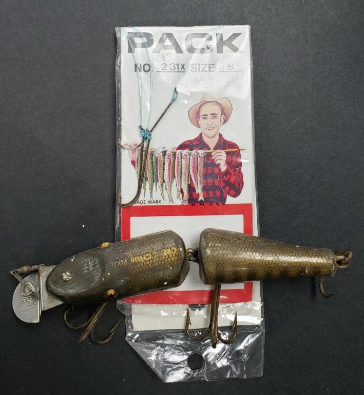 Heddon Pflueger 2 pc LURE VINTAGE with EAGLE CLAW SNELLED FISH HOOKS 6 PACK