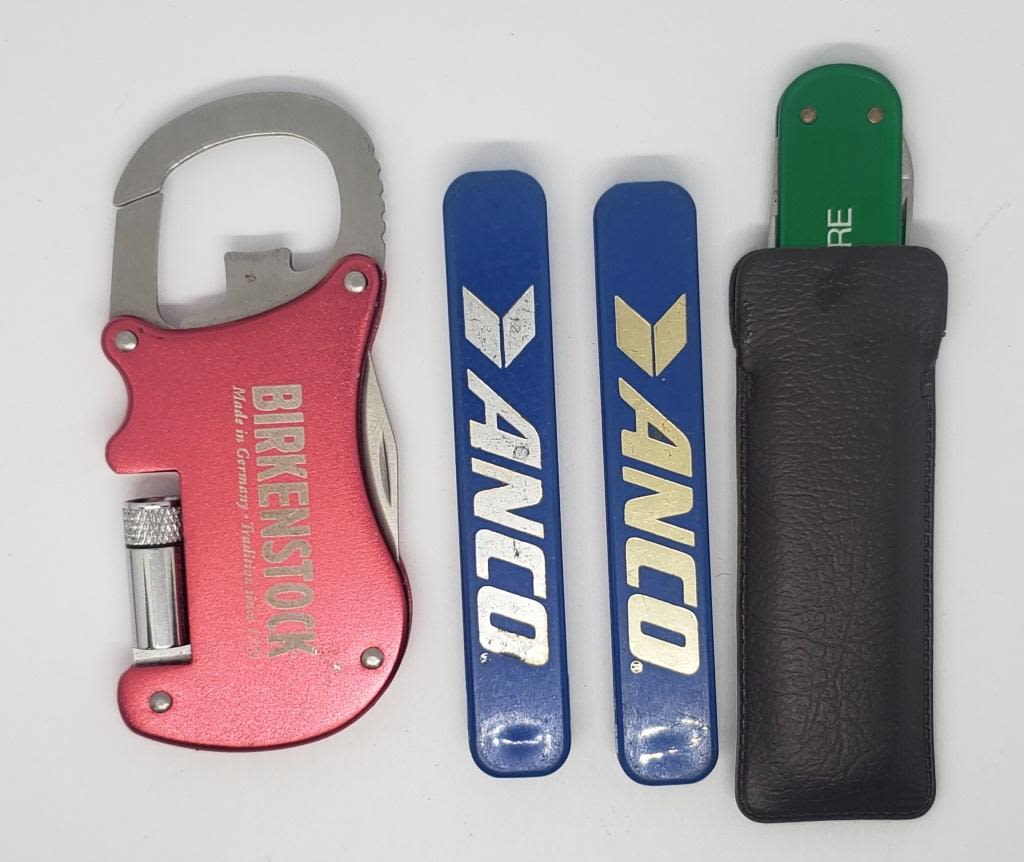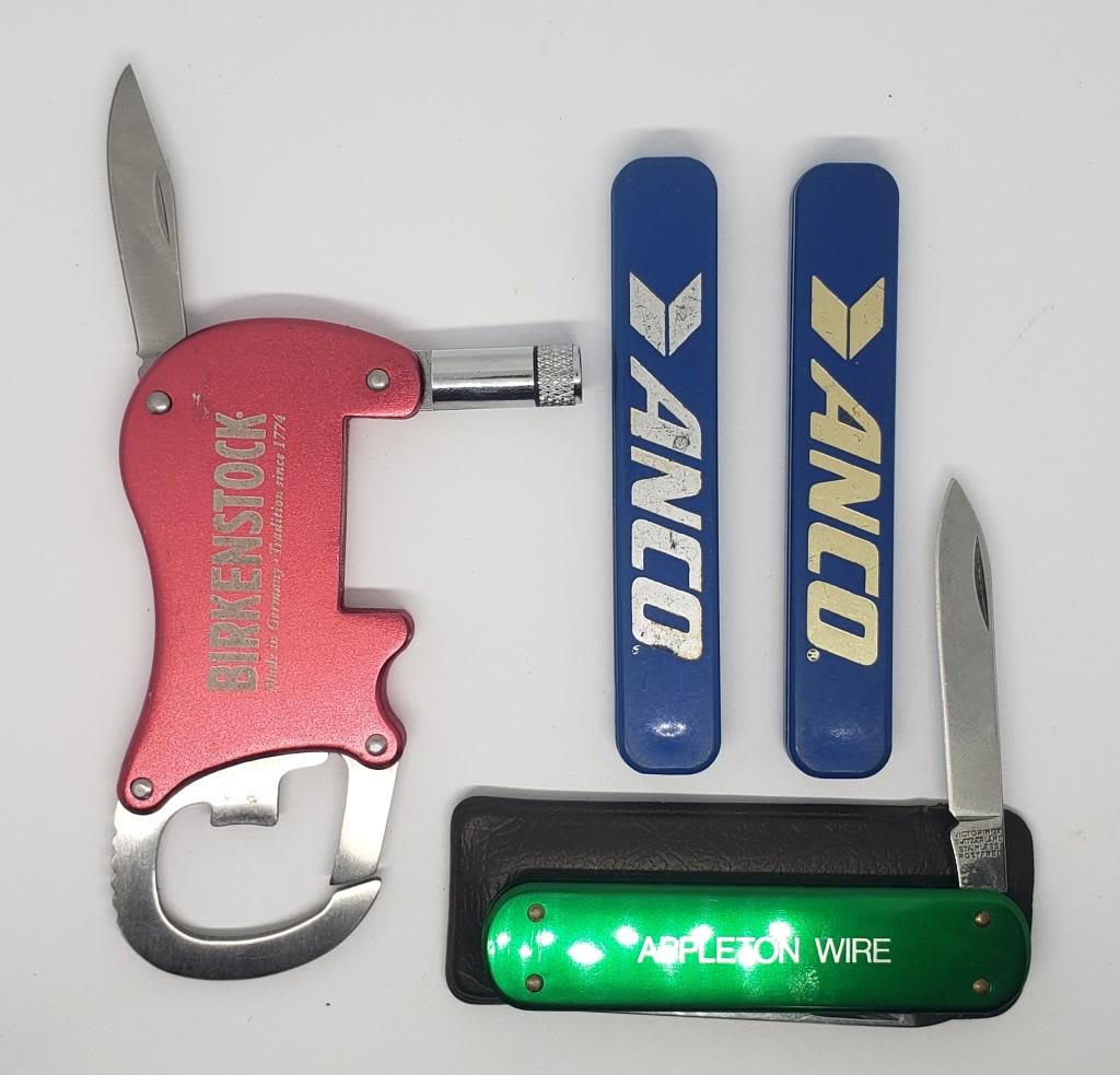 APPLETON WIRE GREEN KNIFE LIKE NEW in SLEEVE, BIRKENSTOCK MULTI KNIFE w/LIGHT, (2) ANCO CUTTERS