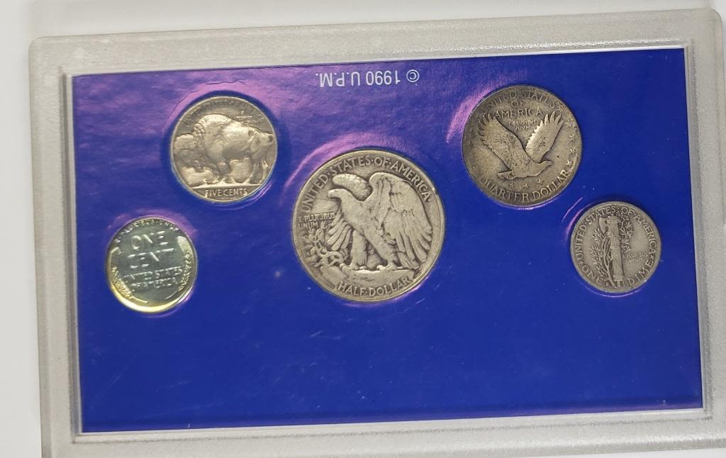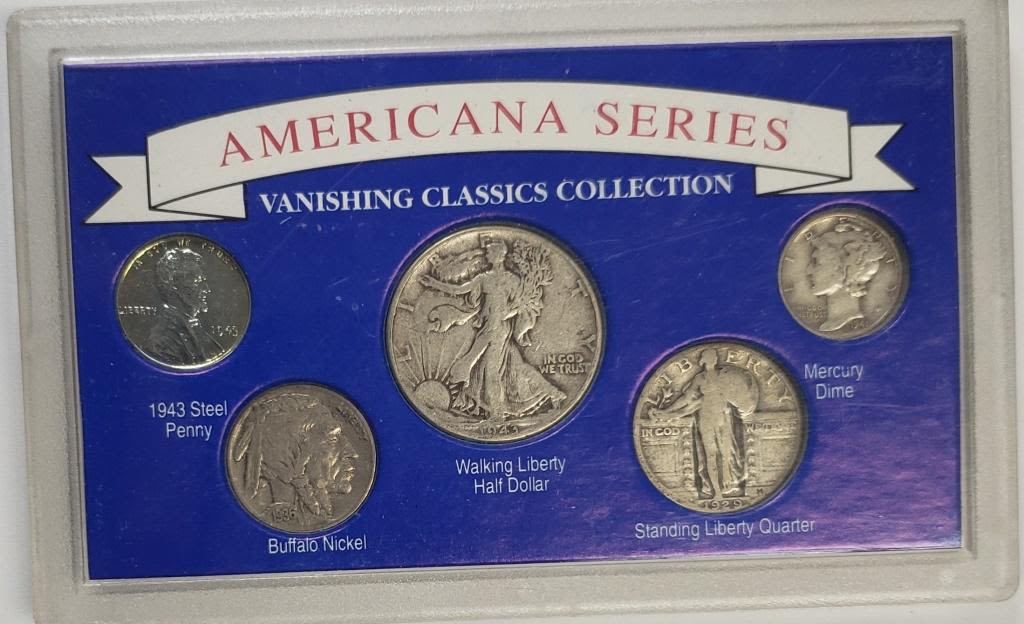 Walking Liberty, Standing Quarter, Mercury Dime, Buffalo Nickel, Steel Penny