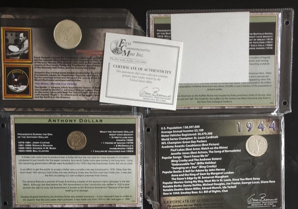 1944 Walking Liberty Half, 1971 Silver Clad Ike Dollar, 1929 Buffalo Nickel, & 1980 Susan B Anthony Dollar
