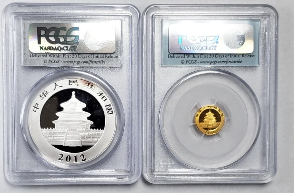 PCGS MS69’s FIRST STIKES – 20 YN GOLD PANDA & 10 YN SILVER PANDA in WOOD DISPLAY BOX