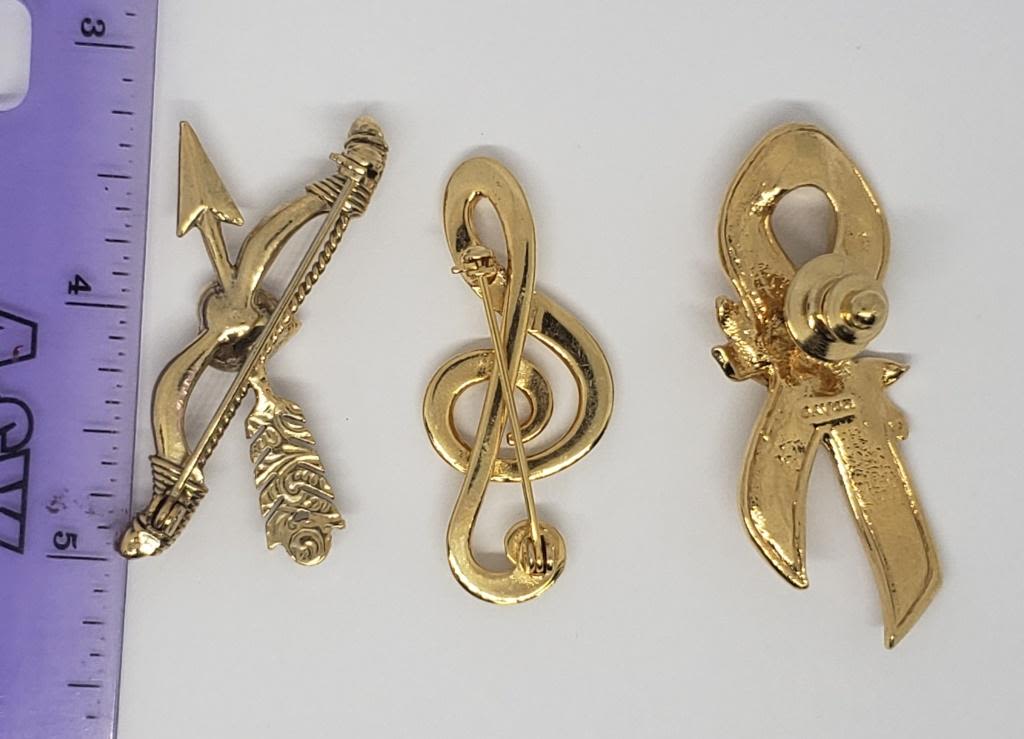 CANCER WITH PINK ENAMEL (1)MUSICAL NOTE WITH RHINESTONES (1)BOW AND ARROW WITH RHINESTONE AND FAUX PEARL
