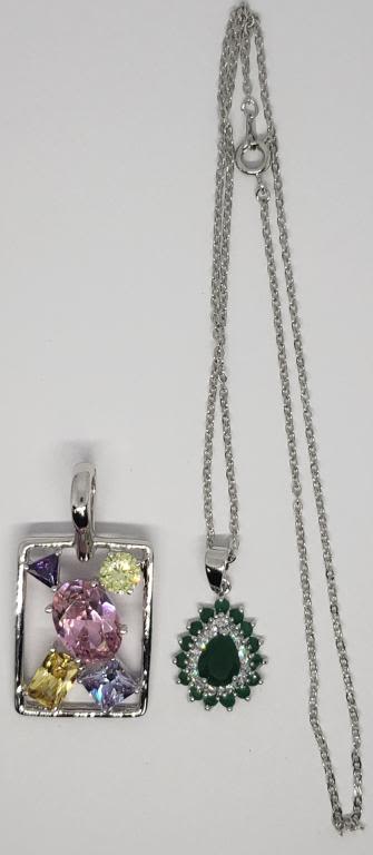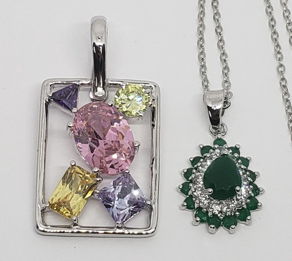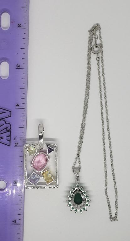 PASTEL COLORED RHINESTONES & (1)TEARDROP PENDANT WITH EMRALD GREEN AND CLEAR RHINESTONES-COMES WITH (1)CHAIN