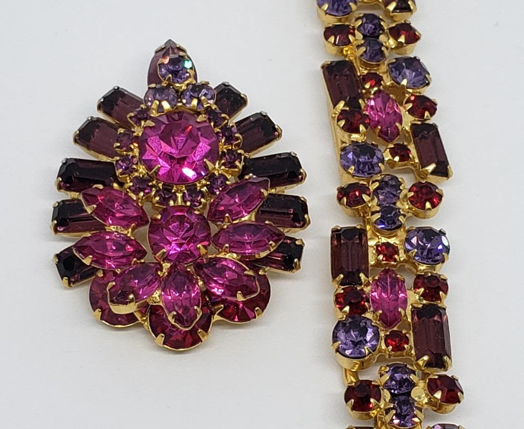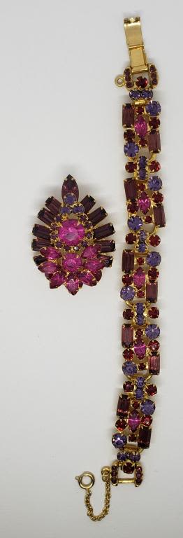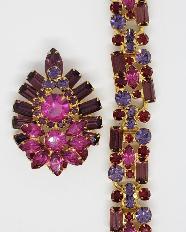 WITH MAGENTA PURPLE AND RED RHINESTONES PLUS MATCHING BROOCH
