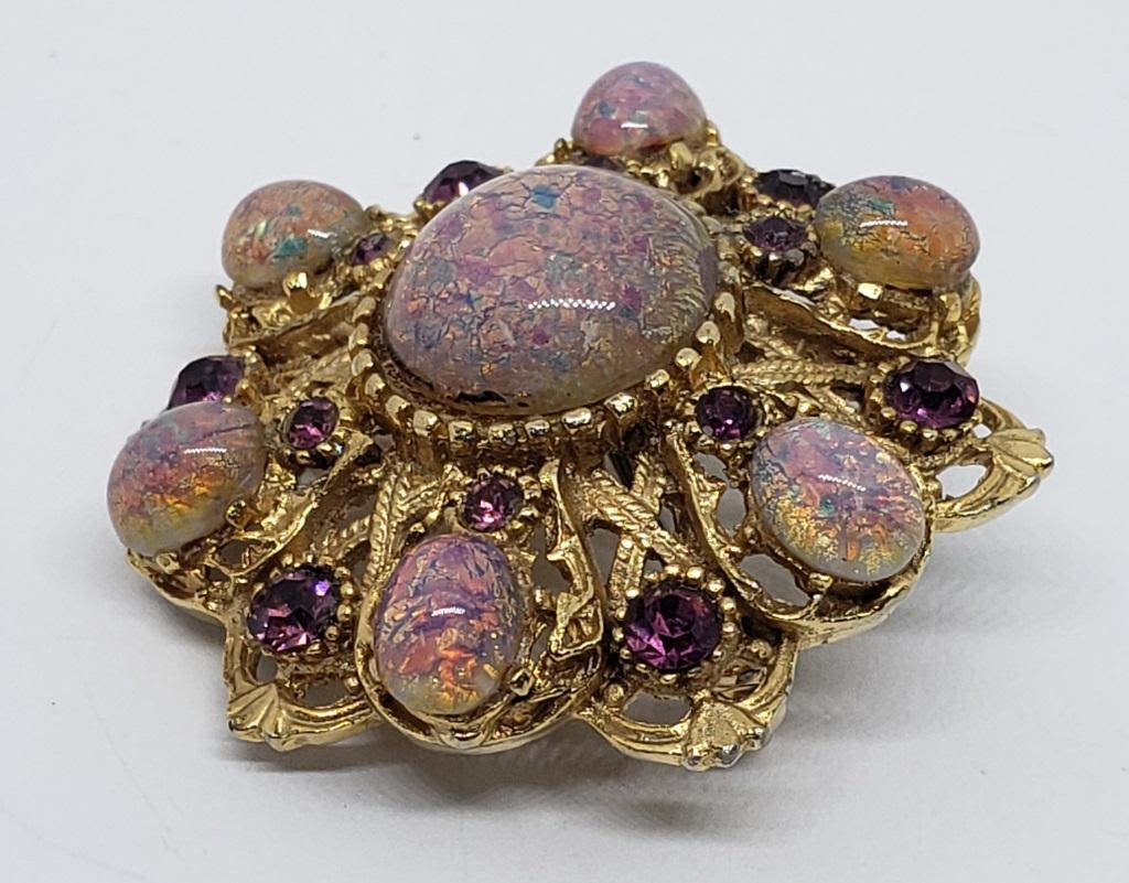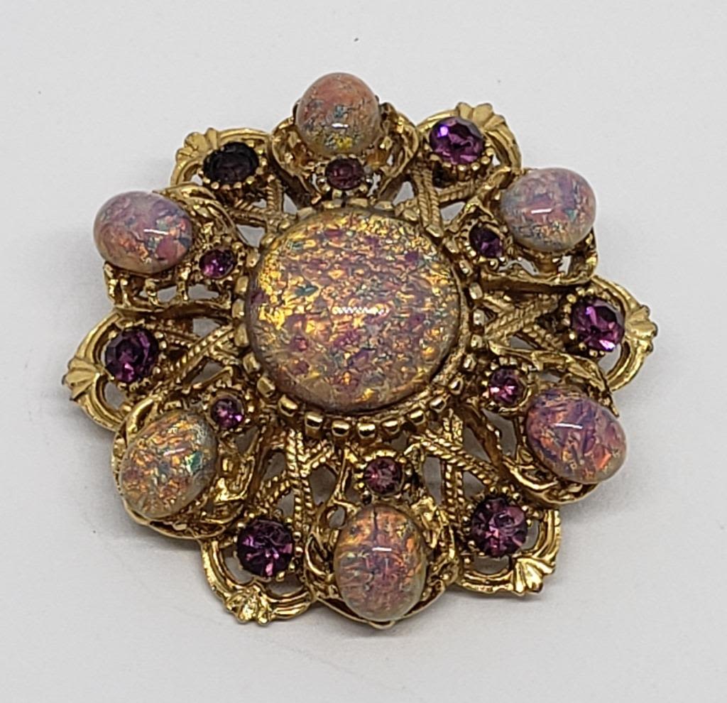 PURPLE RHINESTONES AND PURPLE METALLIC LUCITE ACCENTS-PRETTY PIECE!!